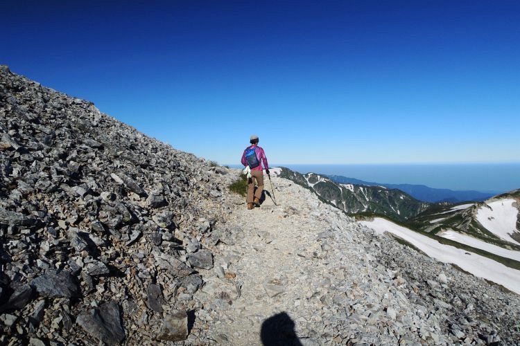稜線上はときおり突風のような強い風が吹き抜けていた。日差しは強烈で、サングラスなしでは眼が痛くなるような眩しさだった。