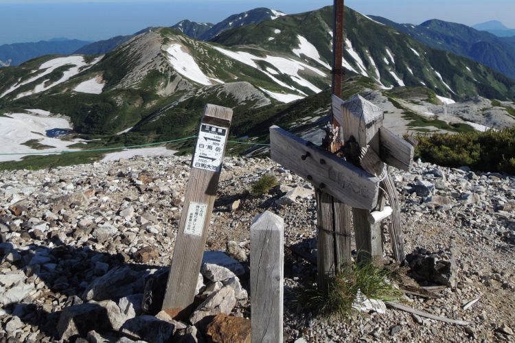 西南西方面、大日岳の右奥には加賀の名峰・白山もくっきり見えていた。