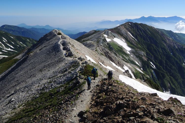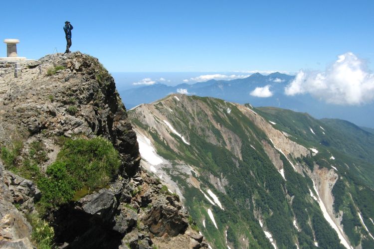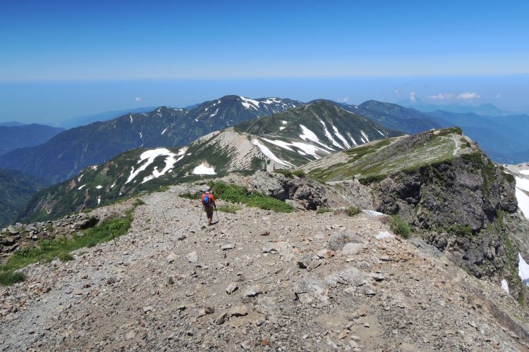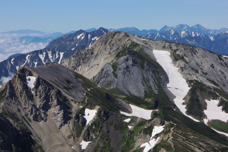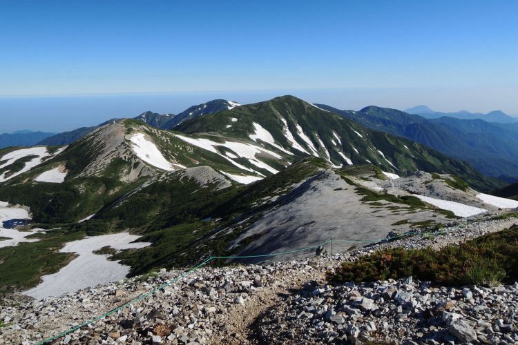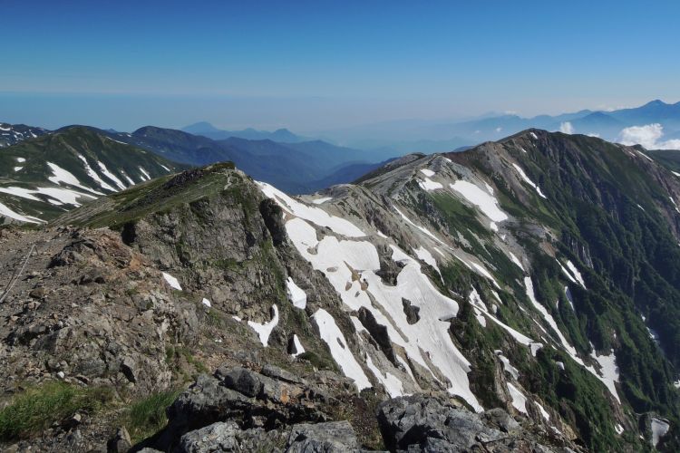 北側には歩いてきた小蓮華山まで続く稜線が一望できる。