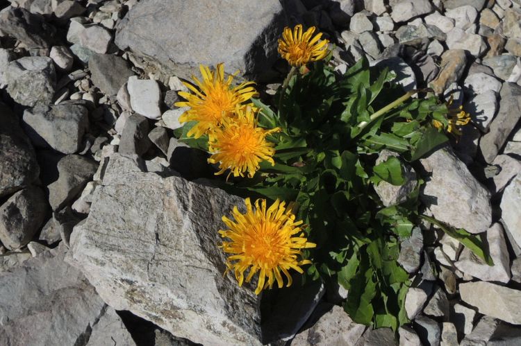 シロウマタンポポ。ミヤマタンポポの変種で、総苞の外片に小角突起がある事で区別する。確認はしていないが、シロウマタンポポということにしておく。