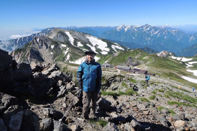 スカイプラザ白馬の喫茶営業は10時からだったので、第2新館前のテーブルベンチでしばし眺めを楽しんだ。立山・剱の眺めが素晴らしく、この地に山小屋を創設した松沢貞逸の卓越した慧眼を感じずにはいられなかった。