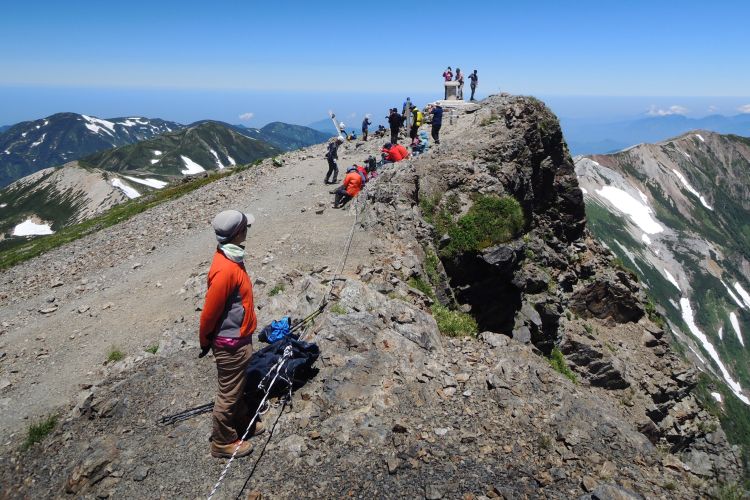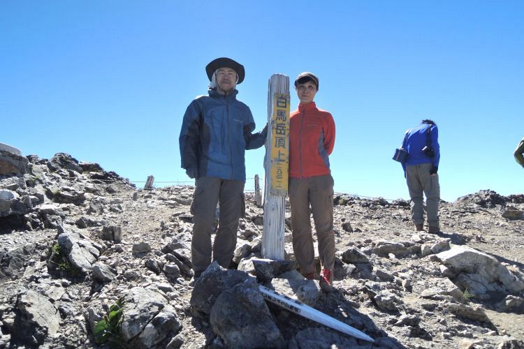 ついに白馬岳(2,932m)に到着。これ以上ないほどの快晴に遠望も利いて、最高の日に登頂することができた。