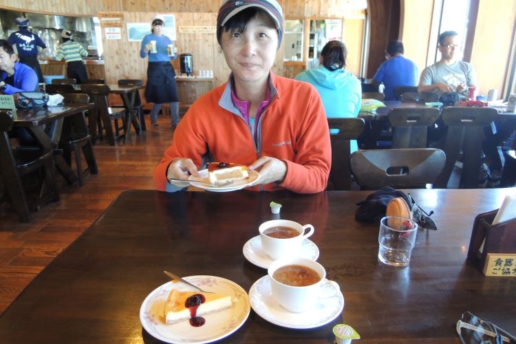 10時にスカイプラザ白馬が開いたので、ケーキ・セットを注文。山で食べる甘味とコーヒーは格別だった。