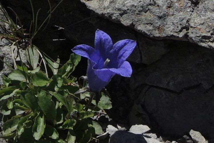 キキョウ科のイワギキョウ。チシマギキョウに似るが、本種は花弁に毛がなく上向きに咲く。