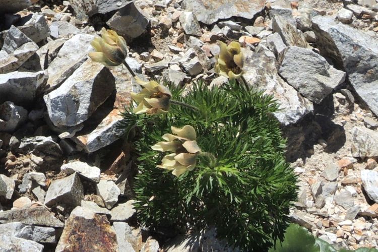 こちらもツクモグサ。花の開き方で見え方が随分違う。開花が早い花なので、もう終わりかけていた。密集する葉の形が特徴的なので、いったん見分けがつくと花が落ちた後の葉も容易に見分けることができた。
