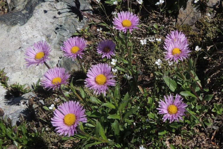 キク科のミヤマアズマギク。アズマギクの高山型亜種。鮮やかな紫の色付きに目を引かれた。