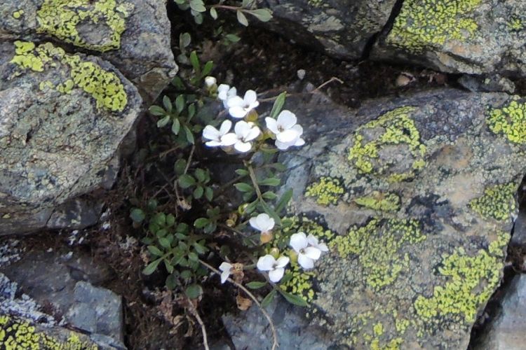 アブラナ科のミヤマタネツケバナ(別名ミネガラシ)。似たような白い花がたくさんあるが、葉の形で見分けがついた。