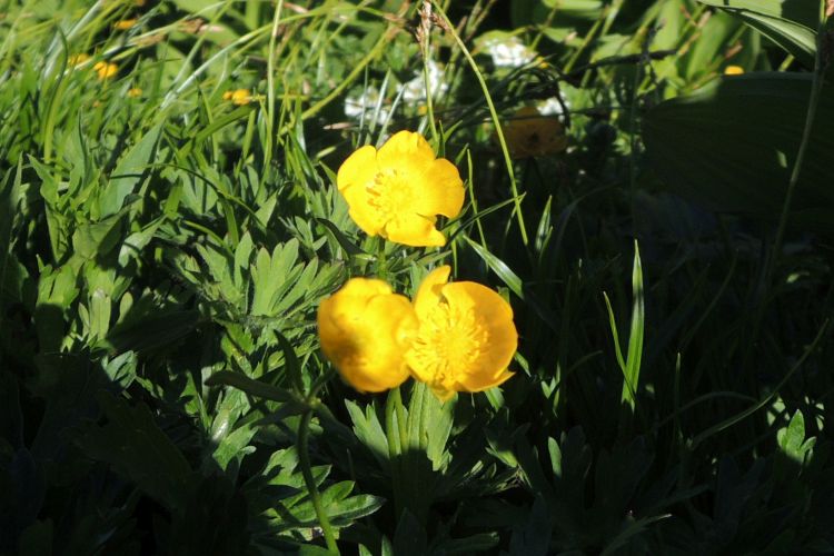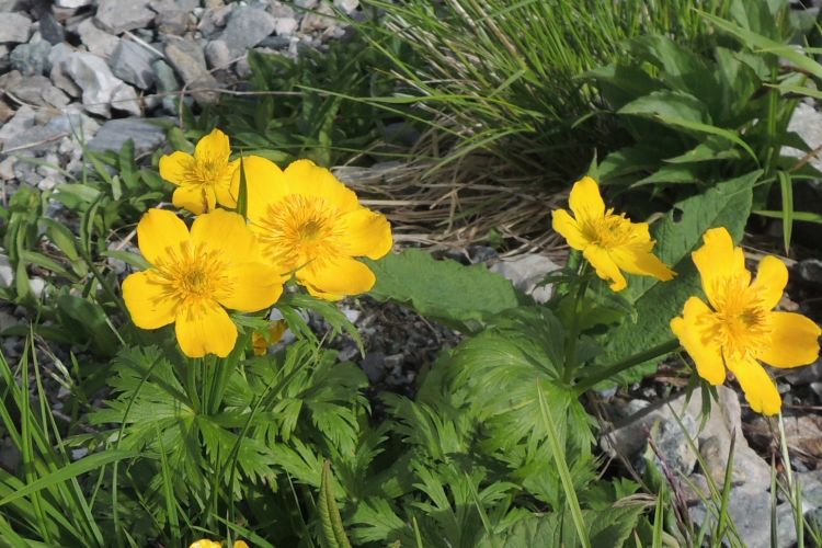 嫁が見つけたミヤマキンポウゲ。花弁に蝋のような艶がある。