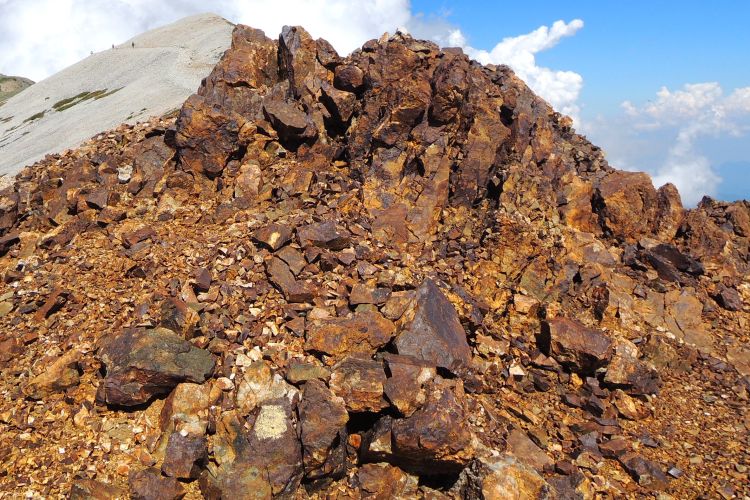 赤い岩石帯を通過したが、何故ここだけ赤いのか不思議に感じた。 酸化しただけではなく、マグマに焼かれて変成したようにも見える。