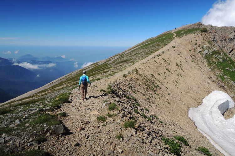 朝からの行動時間が12時間を超えて、さすがに疲れてきたが最後まで稜線の展望と高山植物が目を楽しませてくれた。