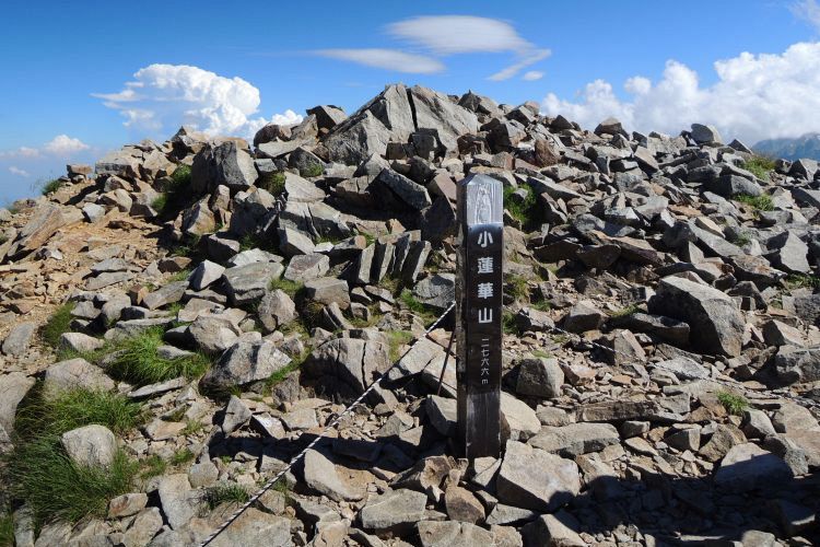 小蓮華山(2,766m)に到着。山頂には大きな鉄剣と石仏が安置されていた。