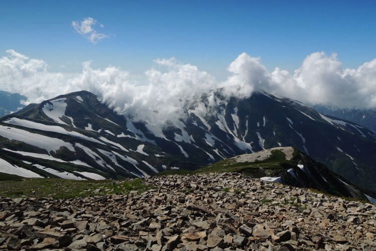 雪倉岳と朝日岳周辺も雲の動きが活発になっていた。