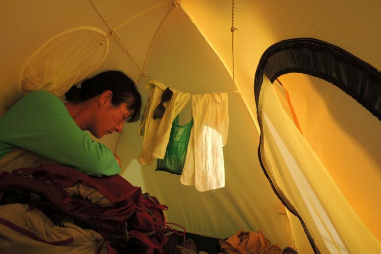 テントの前に広げた敷物に仰向けとなり、満天の夜空を眺めた。天空を横切る流れ星に心の歓声を上げ、ひとつの星も見逃さないように視線を巡らせる。無限の小さな輝きに包まれて、意識は夜の中に溶け込み、いつしか自分という存在が消えていく。静謐で心満たされるひと時だった。もう少し寝ておいた方がよいと思い、2時頃テント内に戻ったが、その後は一睡もできなかった。無呼吸症候群と思われる登山者のいびきがあまりに苦し気で、思わず聞き入ってしまった。