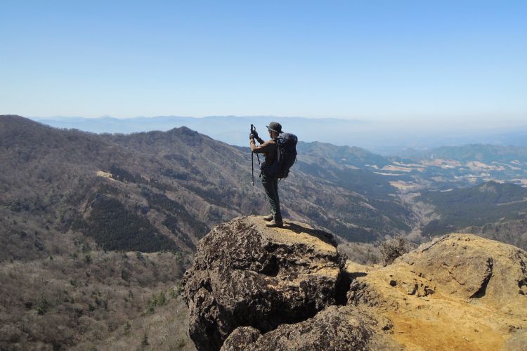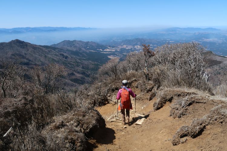 前夜は一の鳥居駐車場で車中泊。左肩に痛みが出て、よく寝られなかった。5時起床、6時過ぎに駐車場を出発。林道歩きをして北谷登山口から上りは千間平コースで、下りは風穴コースを利用した。高度が上がるとスギやヒノキの針葉樹林から広葉樹林帯に変わり、展望は樹林にずっと遮られていた。奥多摩の山によく似ているという印象を受けた。山頂からの眺めは素晴らしく、ほぼ360度の展望が得られた。この日は遠望もきいて、阿蘇五岳や九重連山、由布岳までしっかり見えた。上りの千間平コースは単調だったが、険しい断崖を避けるようにつけられた風穴コースは、ロープや梯子が連続してアスレチックのように楽しめた。地味な百名山であるという印象に変わりはないが、九重連山同様、天気に恵まれて素晴らしい山行になった。
