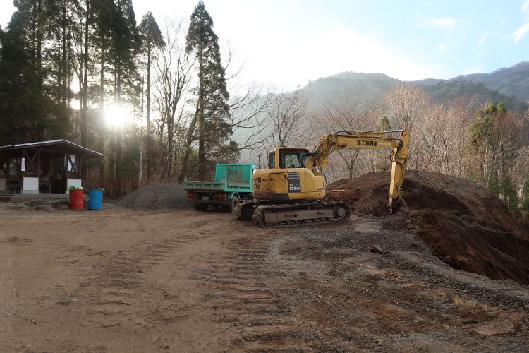 6:55 北谷登山口に到着。ここにも重機が入っていた。