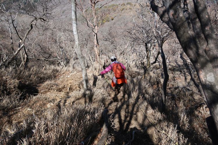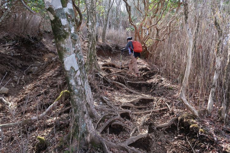 沢筋を離れて今度は樹林帯の急坂を下る。