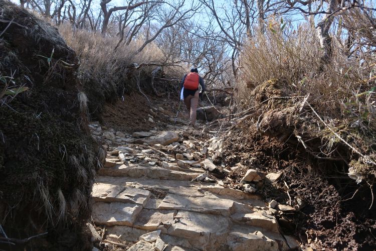 国観峠からしばらく登ると8合目で、そのあたりから傾斜がきつくなった。