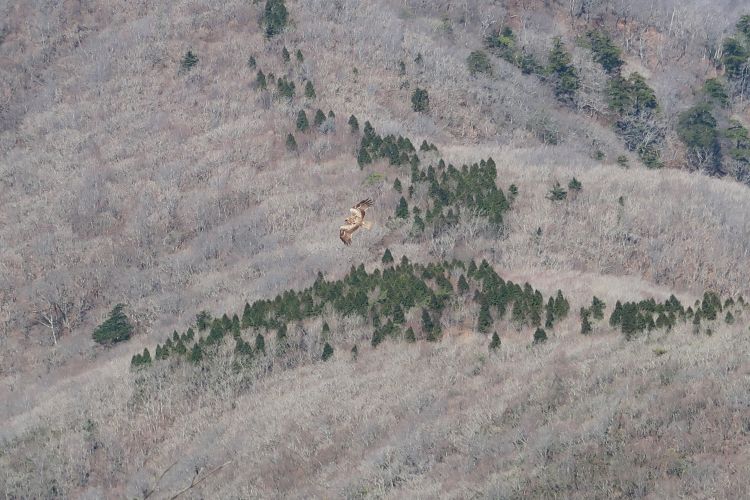 祖母山の麓を滑空するトンビ。上からトンビを眺めることはあまりない。