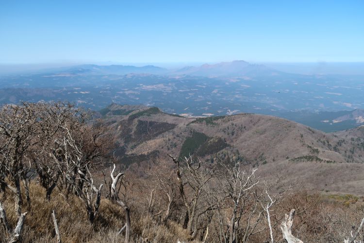 西側の阿蘇山。手前には登ってきた千間平の稜線が見える。