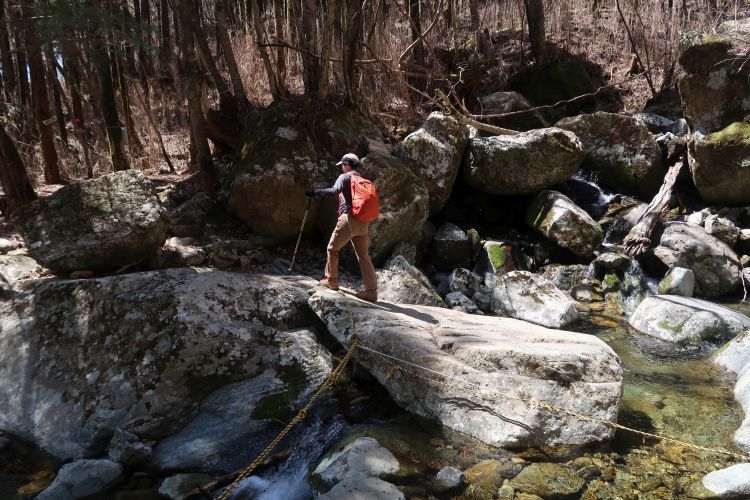 再び沢沿いの道となり、渡渉を何度か繰り返した。