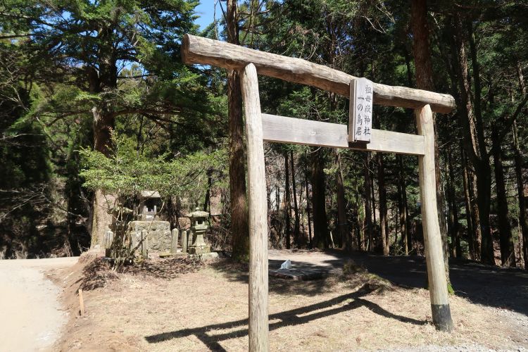30分ほど林道を歩いて、祖母嶽神社一の鳥居を通過。