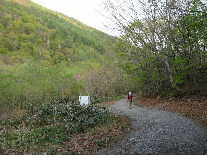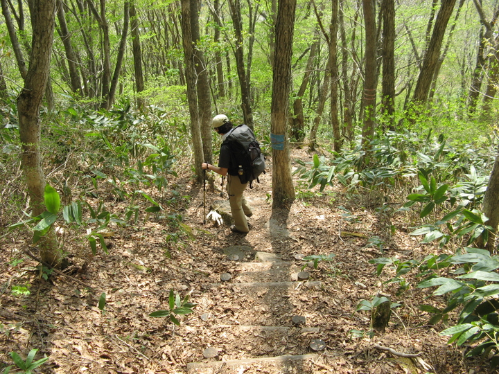 6:40 やっと平元新道の登山口に到着。ここからは丸太の階段が続いた。それほど段差がないので、歩きづらいことはなかった。