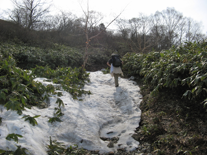 雪が緩んでいるので踏み抜かないように慎重に歩いた。