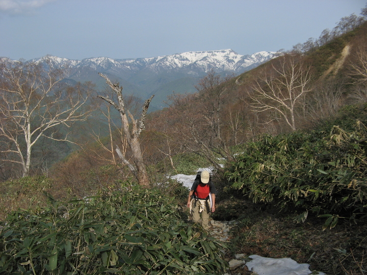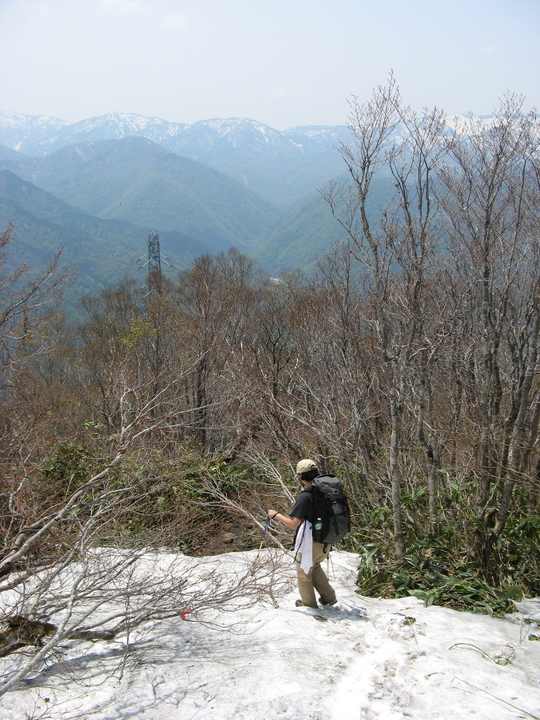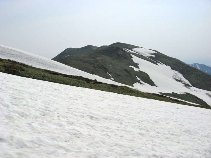 残雪の右手には仙ノ倉山。いくつかのピークがあることが見て取れた。