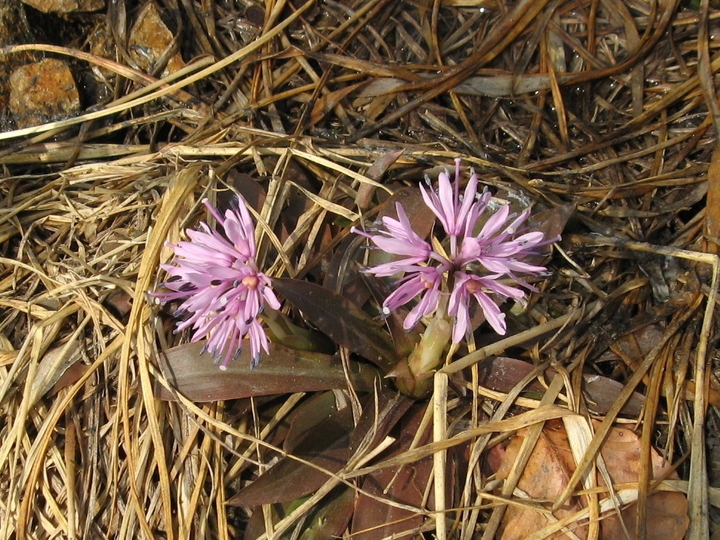 木段のすぐ横に咲いていたショウジョウバカマ。