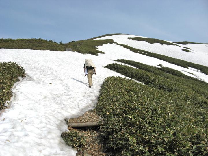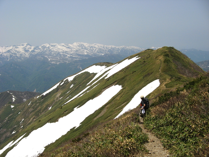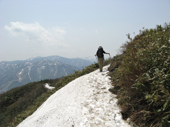 小ピークをいくつか過ぎると、平標山の上に見えていた苗場山が見えなくなって行く。