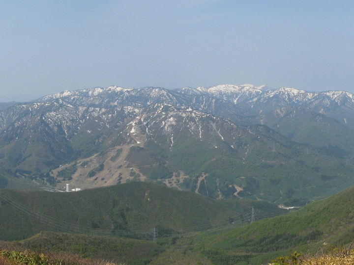 北側、東谷山、日白山、タカマタギなどの山塊。