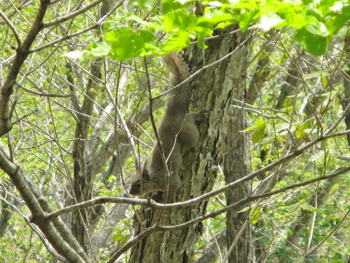 疲れ切ったところでリスを発見。先行していた嫁に気を取られていたようで、動きを止めたところを撮ることができた。