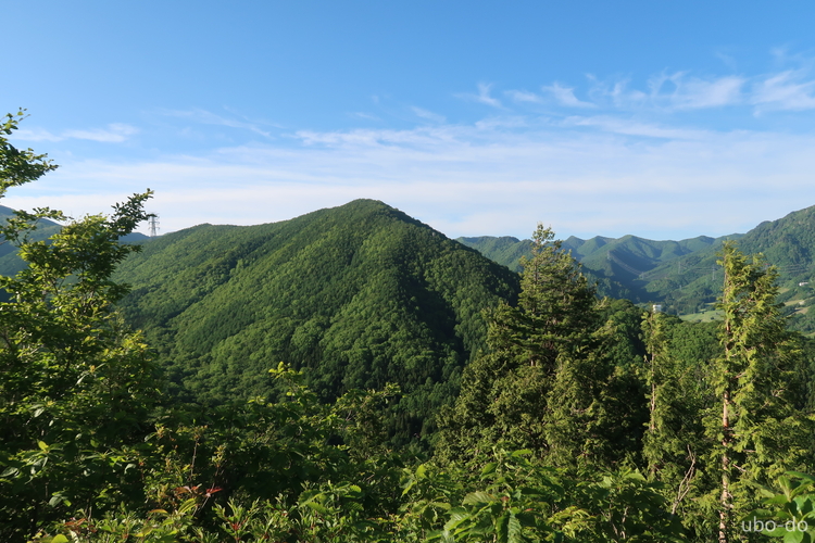 南側の樹間に見えた天丸木山 (標高 1,320m)。