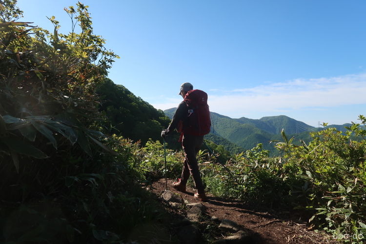 シャクナゲ畑の向こうに仙ノ倉山へと続く稜線が見えた。
