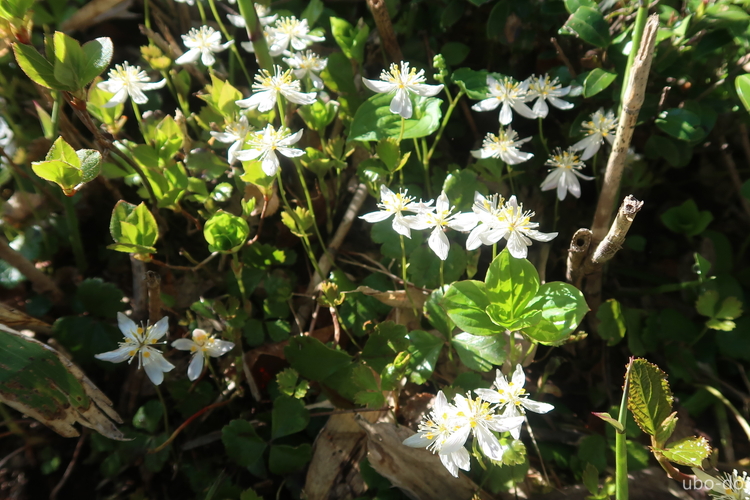 鮮やかなミツバオウレンの群生。