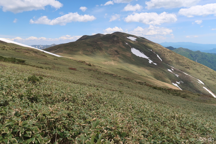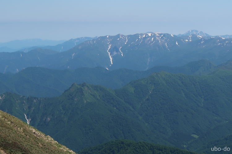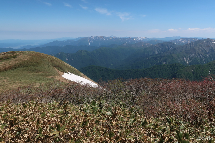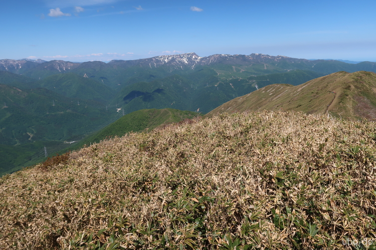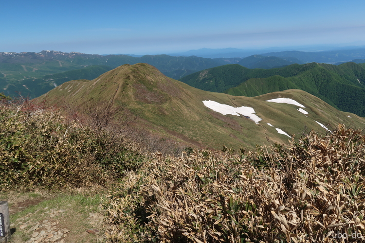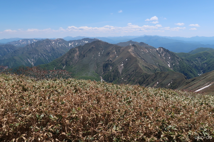 西方面の眺め。苗場山の手前が松手山。