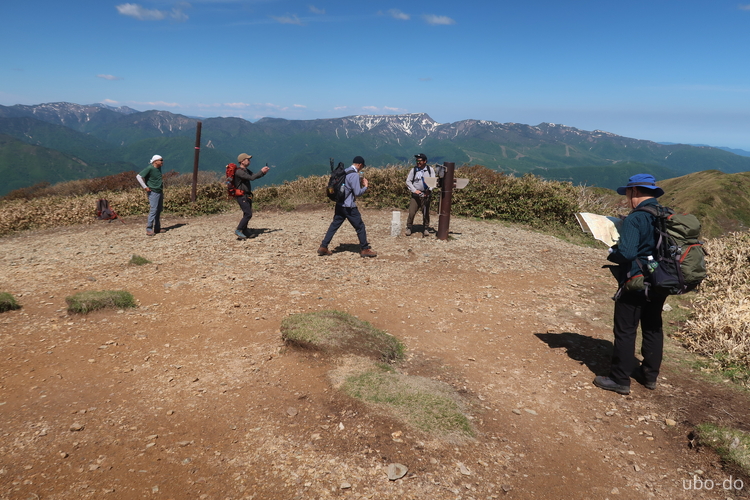 山頂に到着。先に着いた登山者は仙ノ倉山へ向かったのか、人はあまり多くなかった。