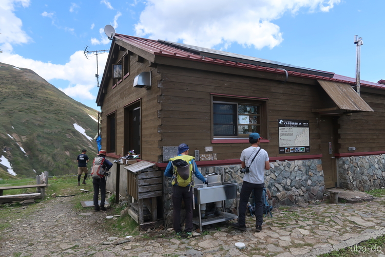 平標山の家に到着。小屋のベンチで小休止した。