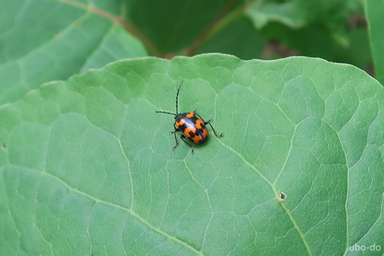 葉っぱの上にいたイタドリハムシ。