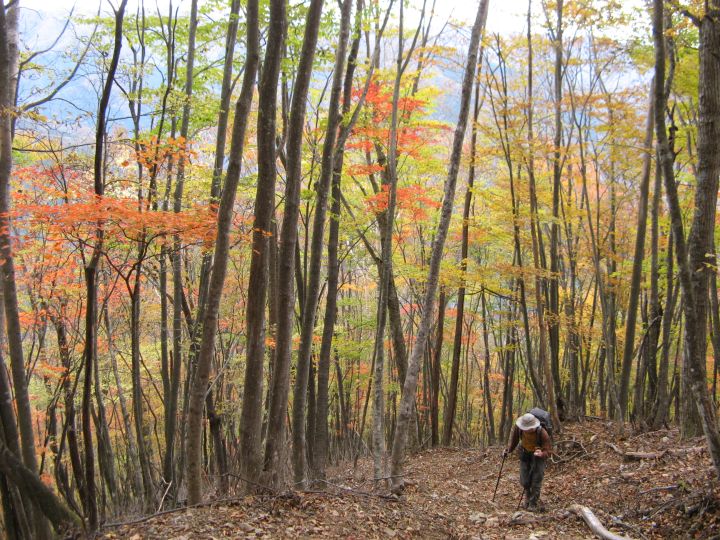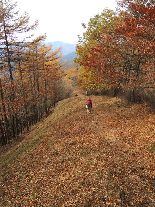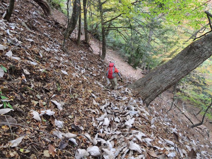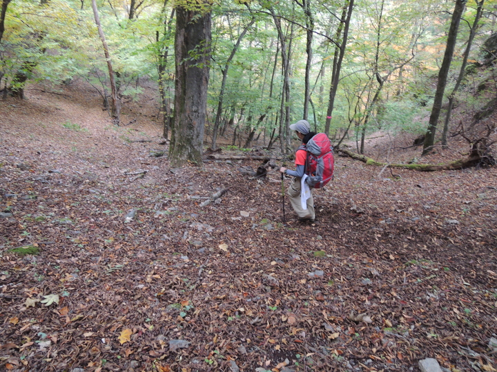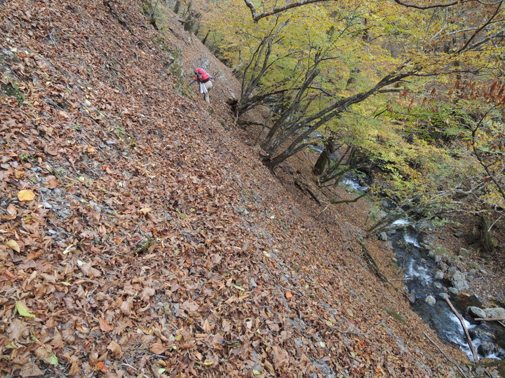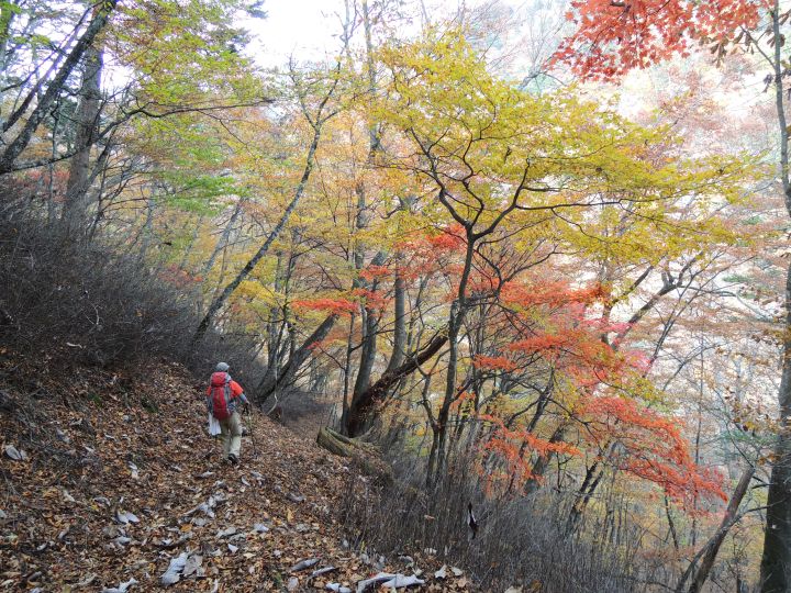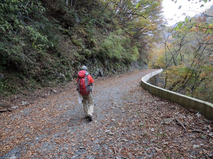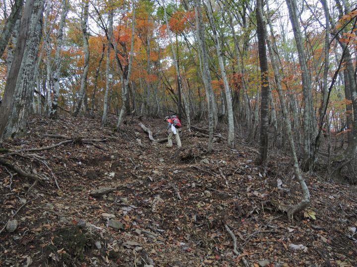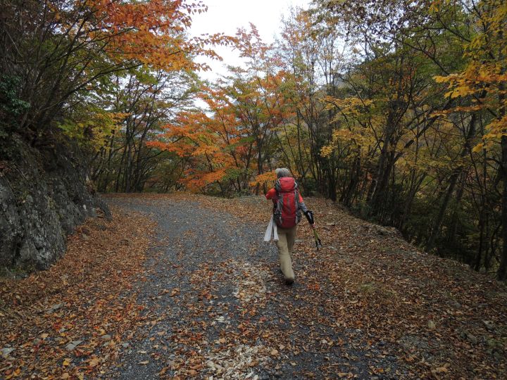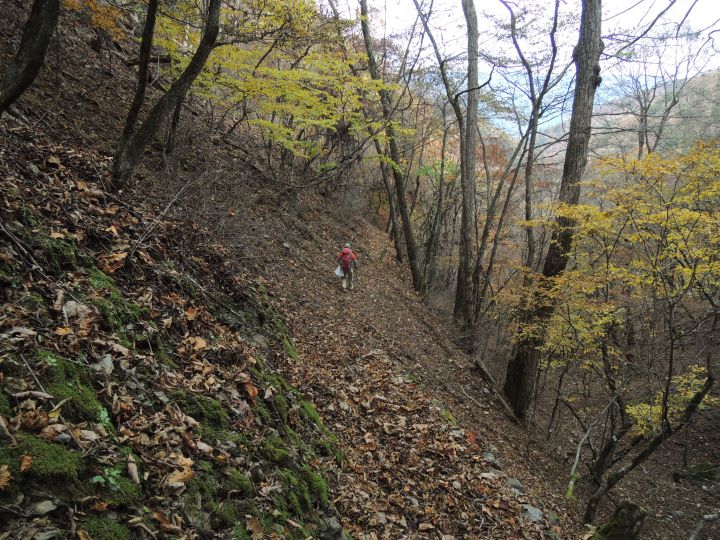 唐松谷林道は落葉に埋もれていた。よいクッションになったが、岩や木の根が見えなくて歩きづらい所もあった。