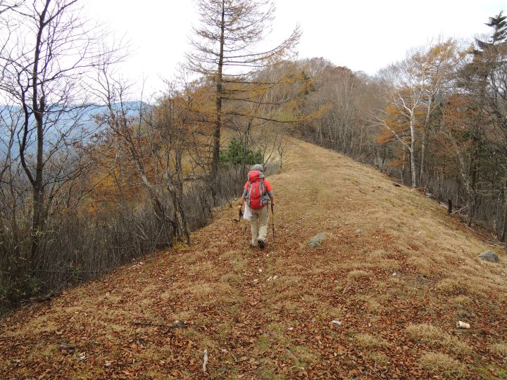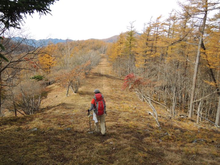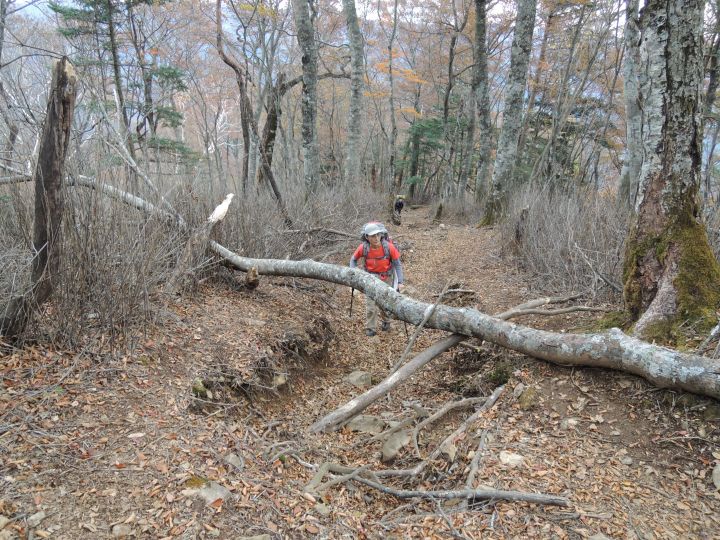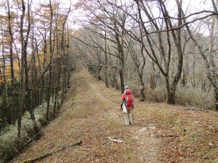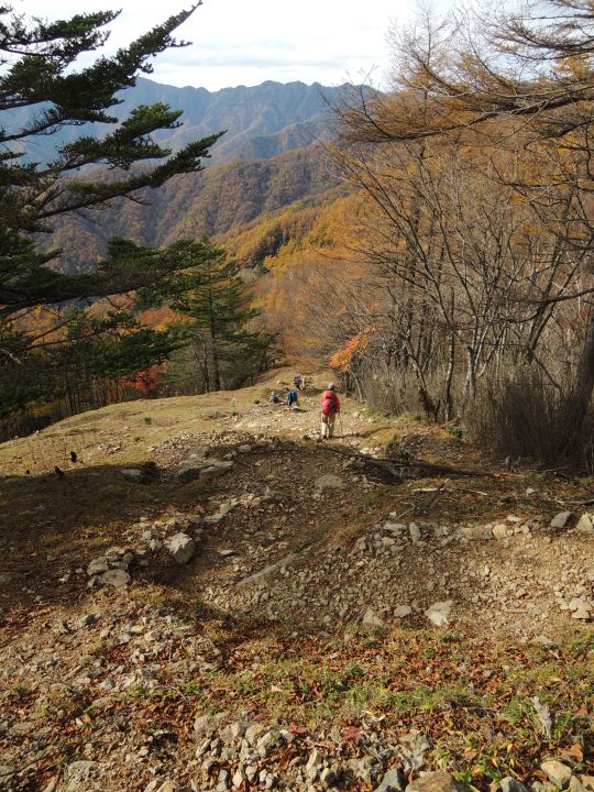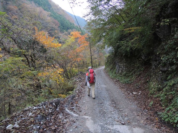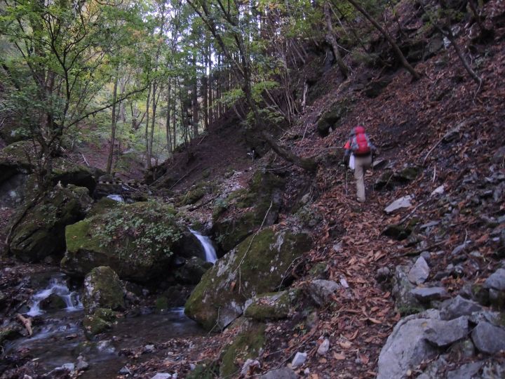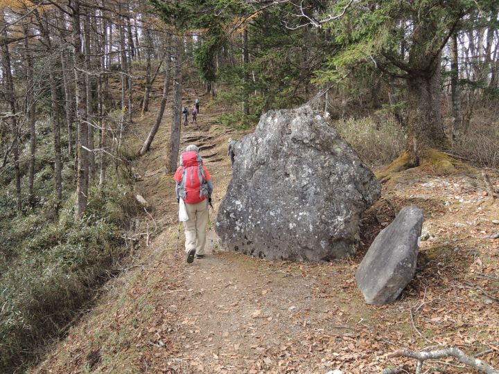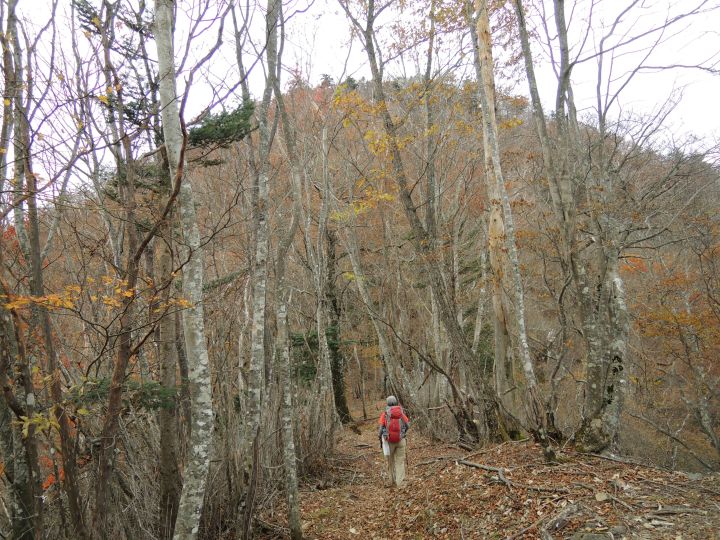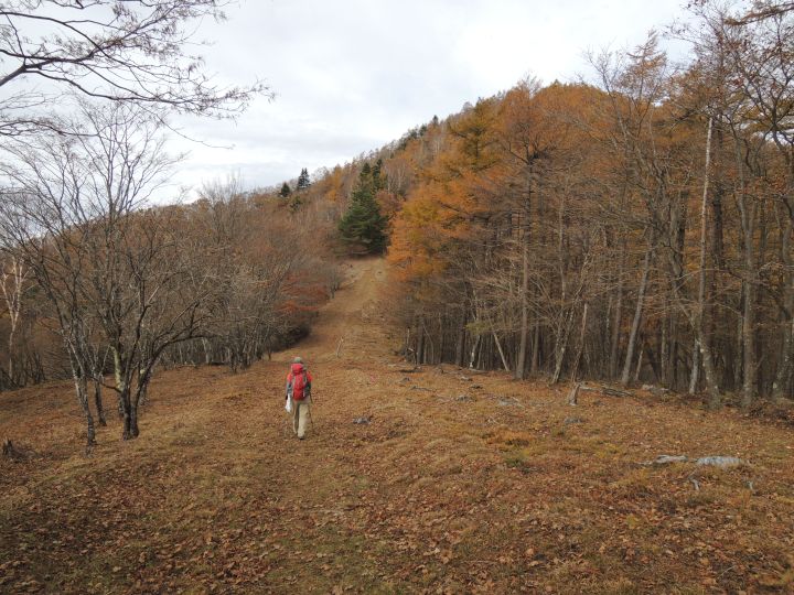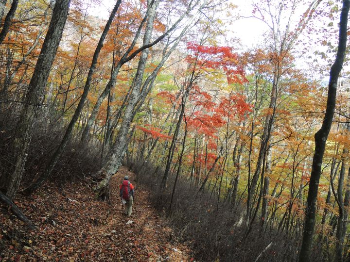唐松谷林道は落葉に埋もれていた。よいクッションになったが、岩や木の根が見えなくて歩きづらい所もあった。