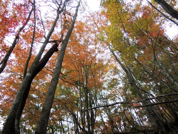上り始めて3時間。周囲にブナの木が目立つようになってきた。