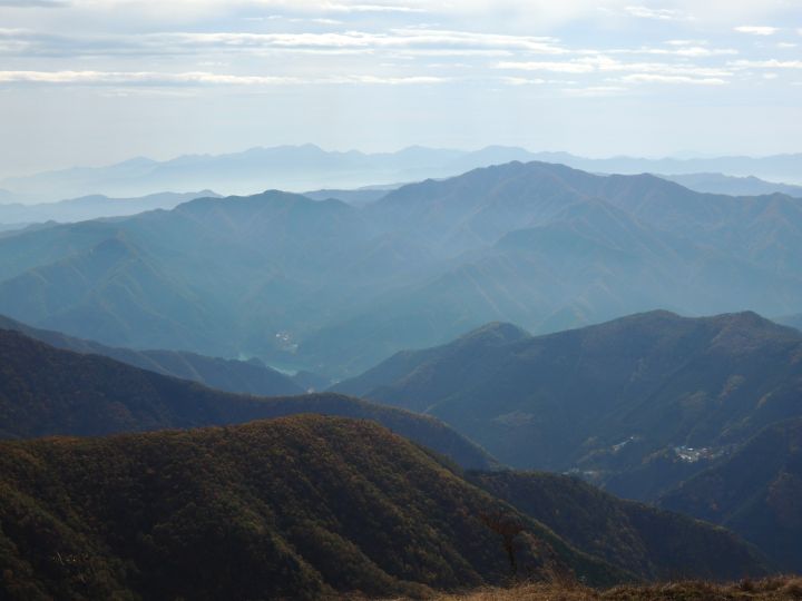 南側の眺め。耳障りなほど大きな声で話している男がいると思ったら、鷹ノ巣山でも見かけた若者だった。上機嫌なのは分かるが、静かに眺めを楽しんでいる人も昼寝をしている人も、山頂にいた全員が聞きたくもない会話を聞かされていたぞ。