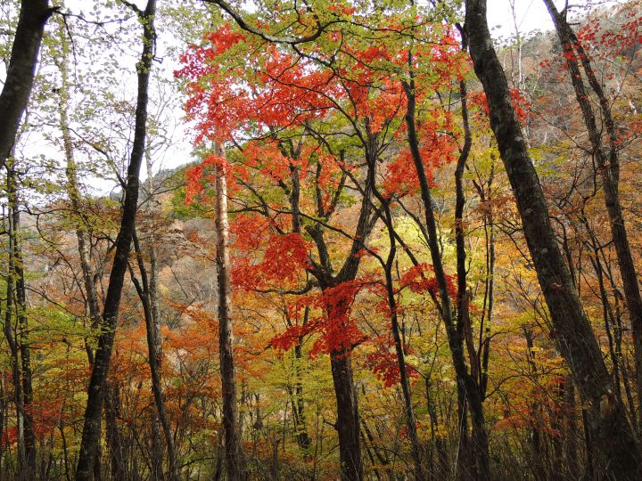 赤・黄・茶・橙と、見事な紅葉の連続だった。