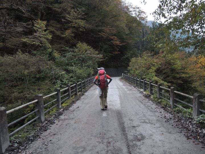 16:40 日原渓流釣場を通過し、次は小川谷橋を渡る。徐々に暗くなってきた。