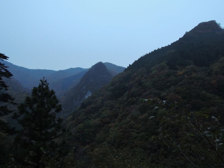 日原林道も先週より紅葉が進んでおり、近くに見える山肌は見事なグラデーションに色づいていた。