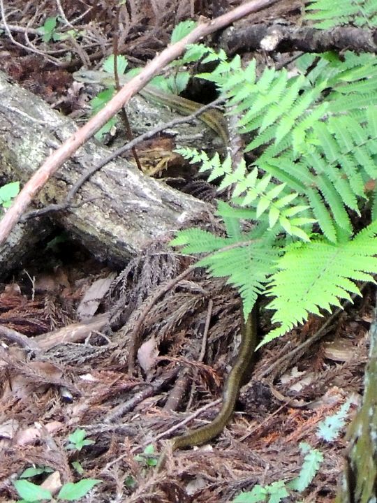 先を歩く嫁がアオダイショウを発見。1mを優に超える大物で、逃げ足が恐ろしく速かった。