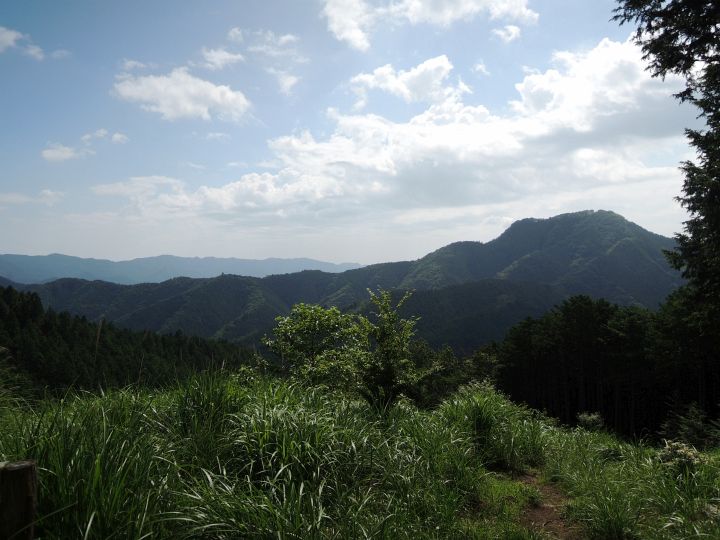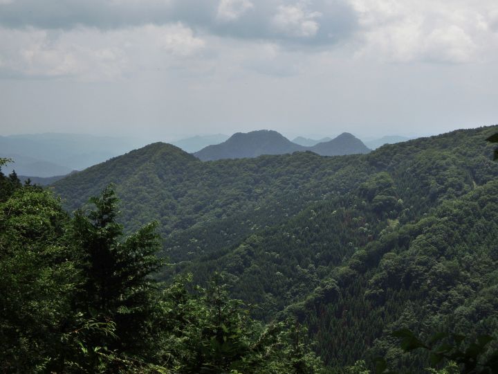 南側の眺め。真ん中の蕨山の左奥には棒ノ嶺と日の出山が見える。