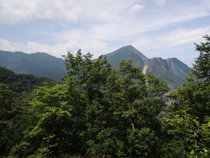 10:55 蔦岩山(1,004m)付近から伊豆ヶ岳が見えた。その右隣の三角は古御岳。