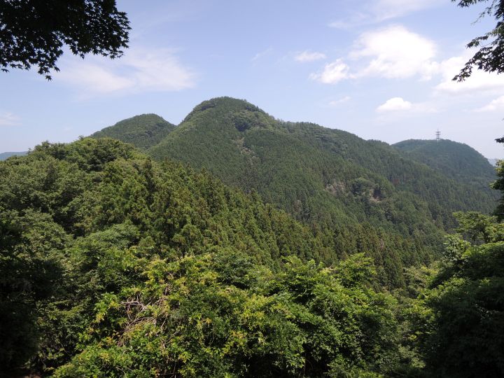 北東方面の二子山。鉄塔がある右の山は甲仁田山(こうにたやま)。